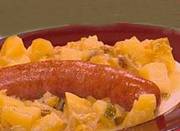 - Stir the leek mixture into the milk sauce, and simmer for another 5 minutes with the sausages. If the sauce is too thick, dilute with some of the liquid used for cooking the leeks.