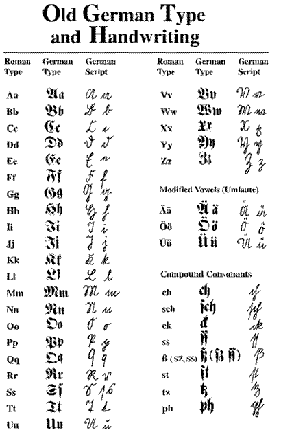 Reading old German records requires a knowledge of basic German genealogical terms and familiarity with German handwriting. Difficulty in reading a record may not result from a record keeper’s poor penmanship but rather the use of a different style of handwriting. As most early German documents were written in some form of Gothic handwriting or printing, familiarity with this style of writing will aid in deciphering early German records.
