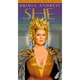 Have you noticed that Switzerland usually plays a key role in Bond films? From the ski stunt at the start of the movie (okay maybe that's done on something more user friendly, or CGI-ed in, still it's the thought that counts, right?) and most important of all the very first "Bond Girl", Ursula Andress, an actress of whose virtues rival the Jungfrau. She emerges (not unlike Venus) from the sea-foam in a champagne-colored bikini. What's a little strange is Ursula Andress playing against type here, she is a woman-child naif, replete with a conch. It's unsettling especially if you recall her as Ayesha, the (startlingly blonde) African Queen in She (Who Must be Obeyed). Or perhaps in the Bond movie she is personifying a "jungfrau"...